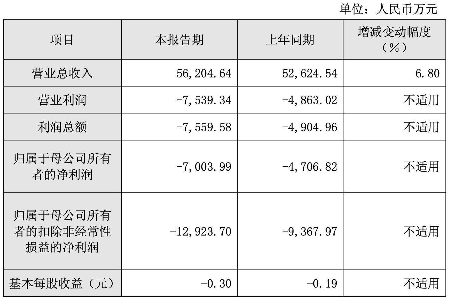 报告期内,公司实现营业收入5.62亿元,同比增长6.8%;归母净利润亏损7003.99万元,上年同期亏损4706.82万元;扣非净利润亏损1.29亿元,上年同期亏损9367.97万元。