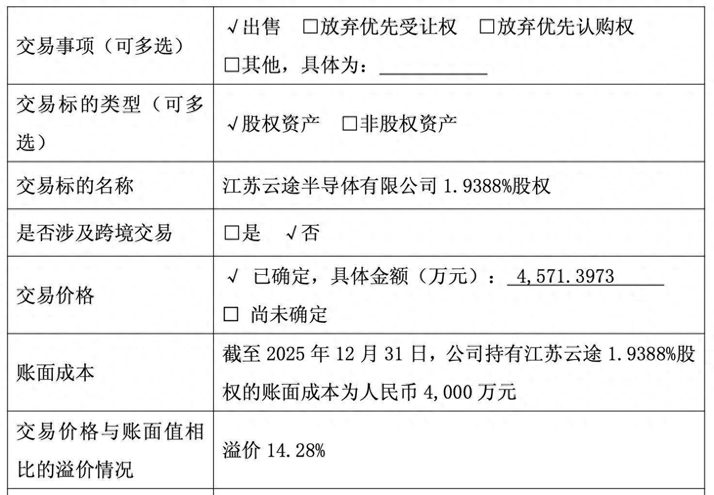 据悉,截至2025年12月31日,帝奥微持有江苏云途1.9388%股权的账面成本为4000万元。