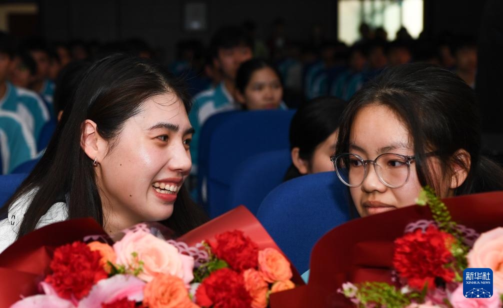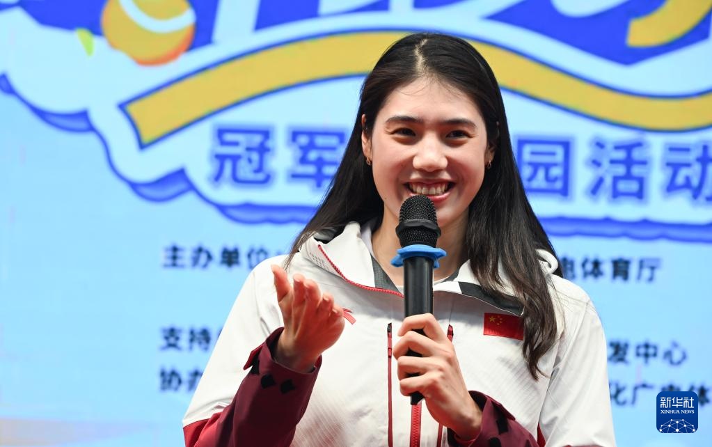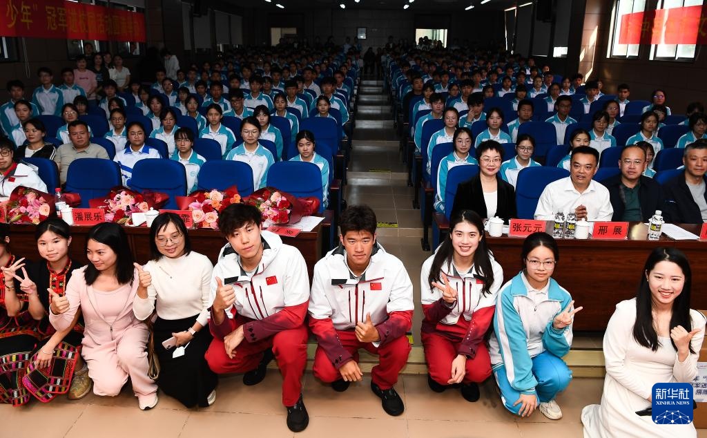 1月5日,以“泳往直前,共筑梦想”为主题的游泳奥运冠军进校园活动在海南省白沙黎族自治县举行。奥运冠军张雨霏、覃海洋、潘展乐来到海南中学白沙学校,与师生进行互动交流、分享经验。