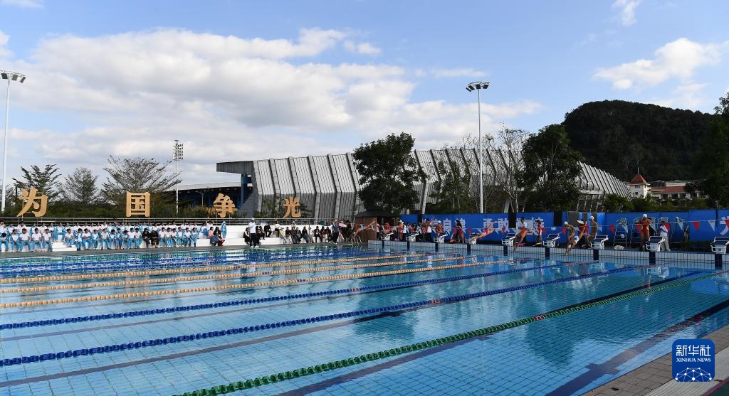 1月5日,海南中学白沙学校学生在观摩国家游泳队训练。新华社记者 杨冠宇 摄