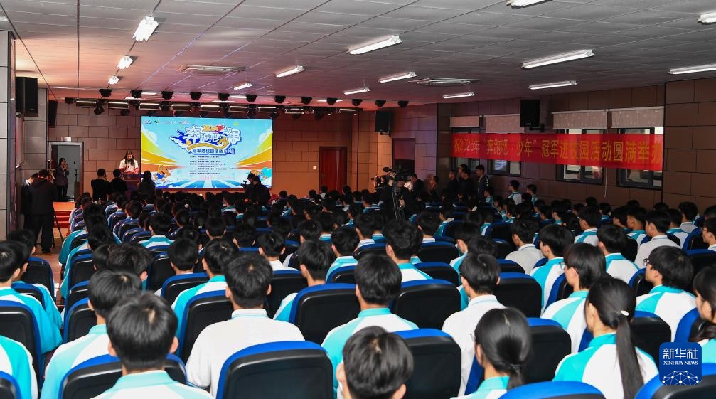 这是1月5日在海南白沙拍摄的“泳往直前,共筑梦想”游泳奥运冠军进校园活动现场。新华社记者 杨冠宇 摄