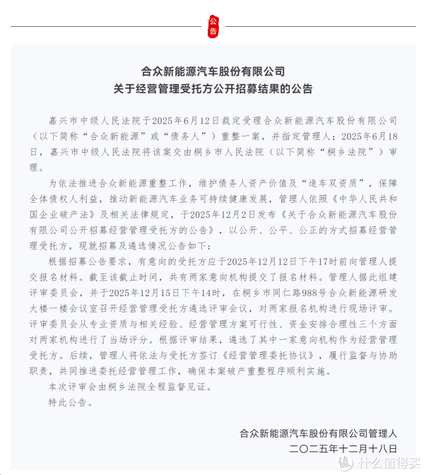 首先,哪吒在12月2日发布公开招募经营管理受托方的公告,要求受托方恢复销售网络、管理销售渠道、盘活原有经销商网络、打通新的销售渠道、重启并运营售后服务。